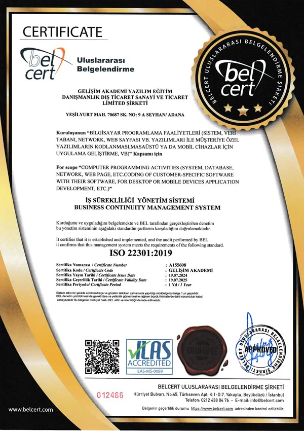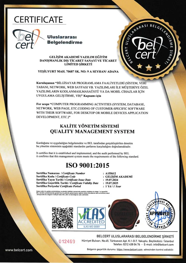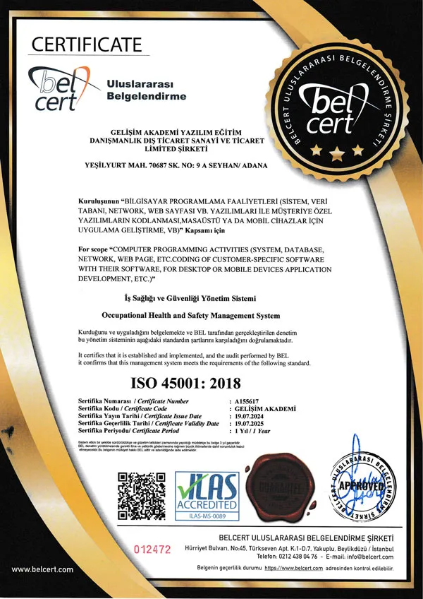 Sercan Koç Akademi olarak, sunduğumuz eğitimlerin kalitesini ulusal ve uluslararası düzeyde onaylatmak için büyük çaba sarf ediyoruz. Akreditasyonlarımız, üniversite onaylı olup, e-Devlet üzerinden sorgulanabilir. Ayrıca, bu belgeler uluslararası geçerliliğe sahip olup, global çapta tanınan standartlarla uyumlu olarak verilmektedir. Bu sayfada, akademimizin almış olduğu akreditasyonları ve onayları bulabilirsiniz. Eğitimlerimizdeki mükemmeliyetin kanıtı olan bu belgeler, öğrencilerimize güvenli, kaliteli ve dünya çapında geçerli bir öğrenim süreci sunduğumuzu vurgulamaktadır.