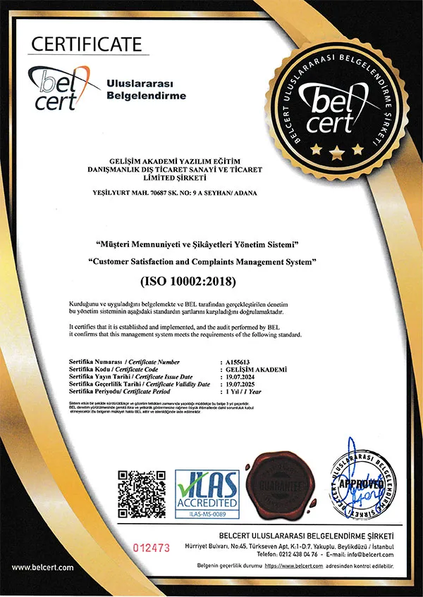 Sitemizden ilk defa sertifika & eğitim almak isteyen kursiyerlerimiz İNDİRİM10 kodunu kullanarak eğitimlerinde %10 indirimden yararlanabilir. Bu kodu, sepetinize ekledikten sonra ilgili alana girmeniz yeterlidir. Detaylar için Eğitim Danışmanına Bağlan!